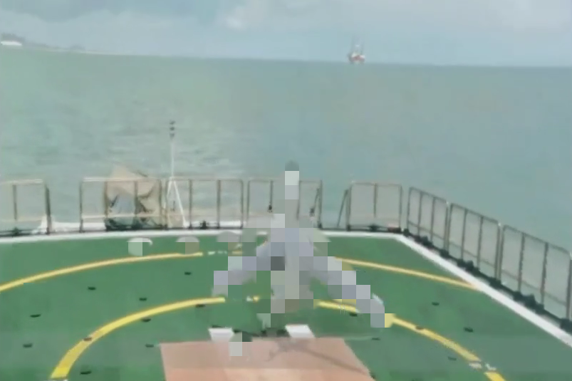 图4 某尾座式垂直起降无人机在舰上起飞瞬间(已马赛克处理)