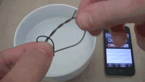 图3.形状记忆合金在热水中恢复原始形状