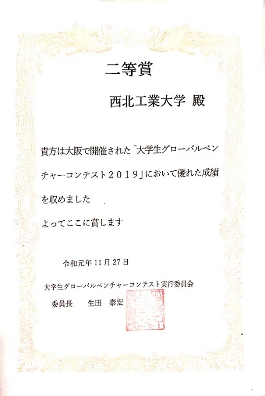 图5.学生获得创业大赛国际二等奖证书