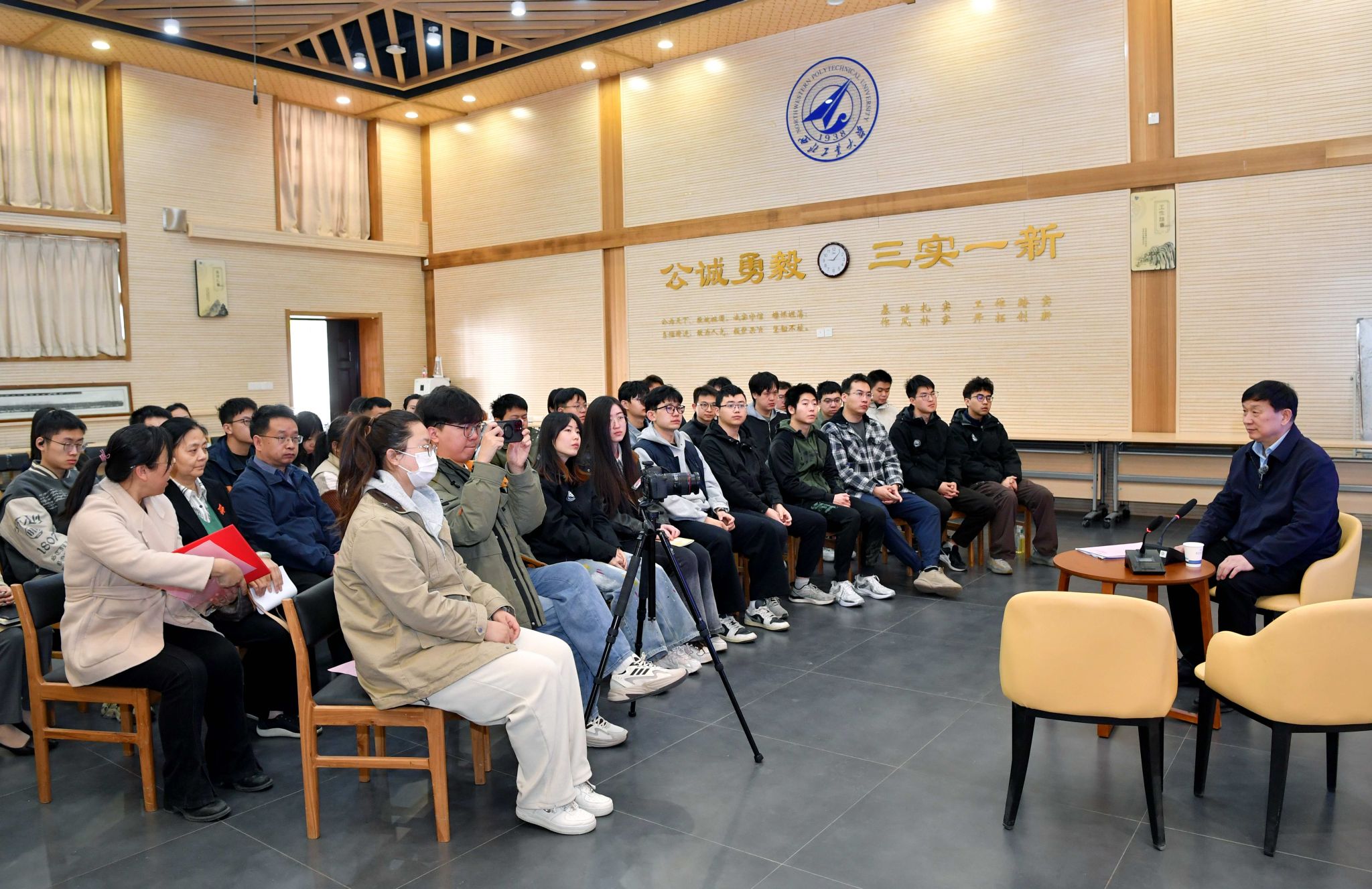 在无人系统和人工智能蓬勃发展的时代背景下,刘郑国总师展望了未来海上无人装备的发展方向,强调智能化时代军工人才需夯实基础、培养创新思维,适应新质生产力和新质战斗力发展需求。同时建议学校结合国防军工需求,举办一线专家进课堂等实践活动,培养博学多才、兼具系统思维的时代新人。最后,他寄语西工大学子要以“天下工大、世界三航”为目标,积少成多、博学多才、创新发展,在新时代肩负起民族复兴的使命。