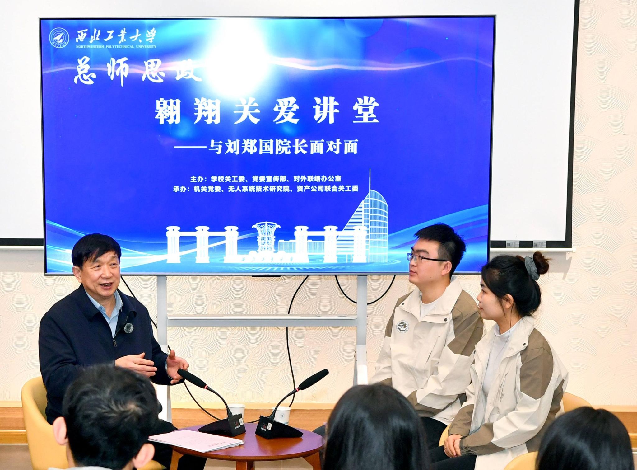 随后,研究院博士生杜博、硕士生华潇潇作为“四个一”访谈小组代表,以面对面交流访谈的形式请刘郑国总师讲述总师之路的军工报国情怀和新时代的育人思维。