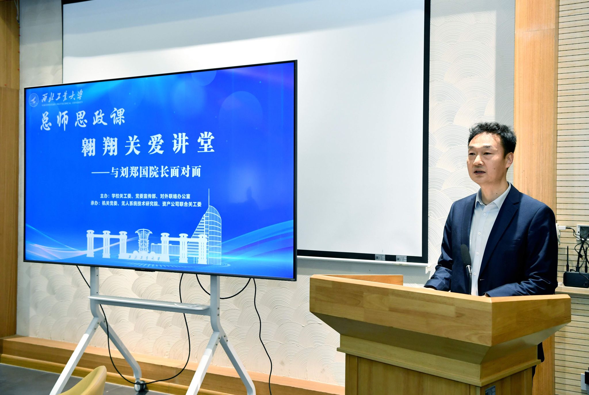 活动开始,徐晓峰介绍了刘郑国总师的个人经历和卓越成就,并感谢刘郑国总师能在百忙之中回到母校,作为西工大“总师育人文化”的鲜活典范为师生们讲授思政课,也希望同学们珍惜宝贵机会,学习总师的家国情怀、创新魄力与战略视野!