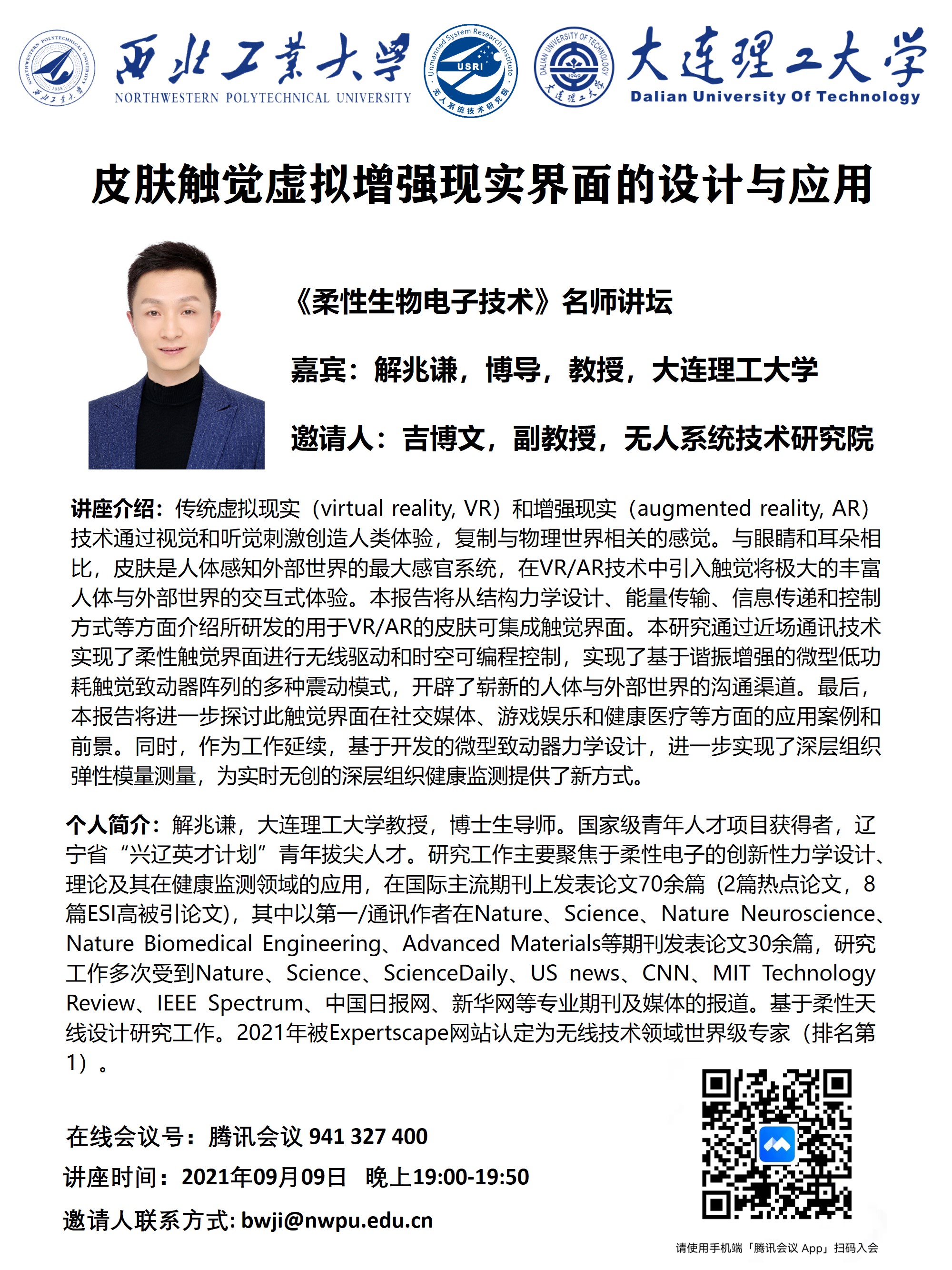 讲座面向全体师生,无需报名,扫码进入会议即可,欢迎关注并踊跃参与!