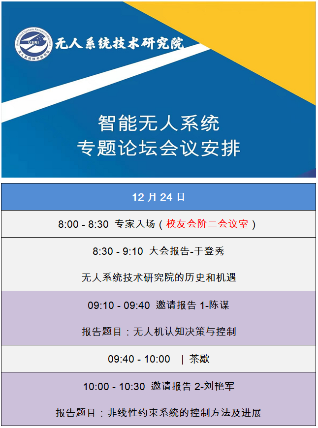 为加强无人系统与人工智能领域学术交流,促进无人系统与人工智能高端前沿技术创新,开展智能无人系统多层次人才培养,推动智能无人系统在行业领域的应用及其产业发展,无人系统技术研究院于12月24日在西北工业大学友谊校区举办“智能无人系统专题论坛”。